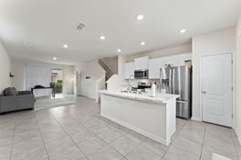 Stylish Kitchen: Featuring stainless steel appliances, ample storage, and a breakfast bar.