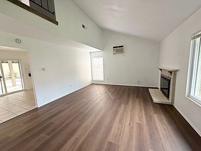 Looking for a place to call home that lives like a single-family residence? This rare condo offers a generous front yard and a spacious, fully enclosed rear yard, providing privacy and outdoor enjoyment within an intimate four-plex community. This three-bedroom, two-bath layout includes a desirable main-level bedroom with no interior or exterior steps—ideal for accessibility needs, multi-generational living, or a convenient downstairs bedroom or home office. The entry opens to a spacious living room featuring a cozy fireplace, new laminate flooring, soaring ceilings, and a wall-mounted air unit. The main-level bedroom is conveniently located just off the entry and offers dual single-door access along with a nearby full bathroom. The dining area and kitchen flow seamlessly from the living room and overlook the expansive enclosed rear patio, creating an ideal indoor-outdoor setting for entertaining or private relaxation. Upstairs, new carpeting enhances two generously sized bedrooms, ...