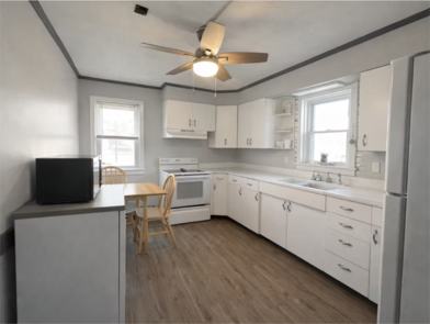 Step into a kitchen equipped with a microwave, stove, and refrigerator, making meal prep a delight. Enjoy the convenience of an in-unit washer and dryer, along with the rarity of having your own garage!