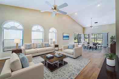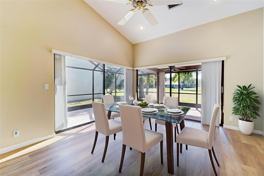 Welcome to Golf Pointe, a charming Woodmont of only 56 homes with a single entry and exit for added privacy. From the moment you arrive, you're welcomed by soaring vaulted ceilings and dun-filled interiors. Each of the four bedrooms features and luxury vinyl flooring. This beautifully designed home offers and open triple-split floor plan perfect for modern living. The chef inspired kitchen showcases real wood cabinetry, stainless steel appliances and granite countertops. The primary suite has two closets. Three full bathrooms remodeled with high-end fixtures and finishes. Nearly every detail has been refreshed, including a full interior repaint, giving the home a move-in-ready appeal. Relax and enjoy the Florida lifestyle on your oversized corner patio overlooking a peaceful golf view!