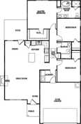 The spacious primary suite features a large walk-in closet and a private bathroom with dual vanities, a garden tub, and a separate shower. Two additional bedrooms offer comfortable space and share a full hall bathroom. A dedicated laundry room is conveniently located just off the garage for added functionality.