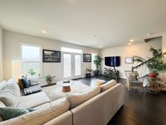 On the main level, there is a convenient bedroom with an attached bathroom, ideal for guests or multigenerational living. The gourmet kitchen is a chef's dream, showcasing granite countertops, stainless steel, and premium appliances, a subway tile backsplash, elegant cabinetry, a generous kitchen island with breakfast seating, and a large pantry for extra storage.