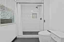 The primary bathroom was fully remodeled in Q4 2025 with new tile, a walk-in shower, and a modern smart toilet. Laminate flooring throughout and updated granite countertops provide a clean, neutral interior with a timeless feel.