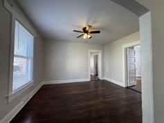 Two bedroom one bath ground level apartment with living room, dining room, and spacious kitchen with large windows all around for lots of natural light; hardwood floors; Laundry room washer and dryer hookup; A detached garage that could be used as a workshop; Huge lot with access to the back alley.