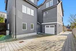 Available Now! Modern townhouse in the heart of Greenwood offering precision workmanship and sophisticated design just minutes from established shops, restaurants, and neighborhood favorites. Stunning finishes include large windows, shiplap accents, white oak engineered flooring, and designer hex tile. The open living, dining, and kitchen layout is perfect for entertaining, featuring quartz countertops and floating shelves, while light-filled interiors extend to a private patio. Main level includes a bedroom and full bath with soaking tub; upstairs boasts a spacious primary suite with double vanity and three-quarter bath. Additional highlights include a 240-volt outlet ready for EV charging, one designated parking space, and a serene park-like setting.