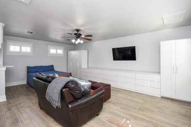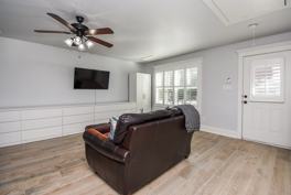 Tucked behind gated, controlled access on iconic Heights Boulevard, this private 1 bed, 1 bath garage apartment offers charm, comfort, and true walkability in one of Houston’s most sought-after neighborhoods. Detached from the main residence, the studio feels quiet and secluded while still placing you in the heart of the Heights. Inside, natural light fills a thoughtfully designed open layout with plantation shutters and a clean, modern aesthetic. The space flows easily between living, dining, and sleeping areas for comfortable everyday living. The kitchen features white shaker cabinetry, marble countertops, subway tile backsplash, electric range, dishwasher, refrigerator, and a pass-through breakfast bar to the living area. The bathroom includes a vanity, tiled tub and shower combination, and built-in storage. Enjoy peaceful living at home or step out to nearby trails, dining, and neighborhood favorites from this well-maintained Heights garage apartment.