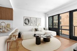 Residence 3C - Boutique Design Meets Everyday Ease Set within Greenpoint's newest boutique rental building, 36 India Street, Residence 3C is a 623-square-foot one-bedroom, one-bath home that feels every bit like a condominium. The layout balances openness and intention. A spacious living area extends seamlessly to a private balcony, offering fresh air and natural light throughout the day. The chef's kitchen anchors the space with Raphael Stone quartz countertops, custom Tafisa cabinetry in Acadia Wood and Fossil Gray, LG stainless-steel smart appliances, and a direct-vented range hood-bringing true functionality to modern design. Inside, solid oak flooring, oversized double-paned windows, and custom roller shades create a grounded, contemporary tone. The bedroom fits a queen bed with room to breathe, while the spa-inspired bathroom features porcelain tile, a floating vanity, and Kohler fixtures for a quietly luxurious finish. Residents of 36 India Street enjoy amenities that are personal, not performative: a rooftop terrace with panoramic skyline views, a resident lounge with kitchenette, laundry on every floor, and a dedicated pet wash room. Indoor/outdoor parking with EV charging, bicycle storage, and private storage units are also available for an additional fee. Just one block from the East River Ferry, 36 India Street offers a human-scaled alternative to the glass towers that surround it-modern design, intelligent amenities, and the warmth of a true home in the heart of Greenpoint. Residence 3C - boutique living with condominium-level refinement.