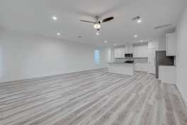 Great LOCATION IN Gated Community! BRAND NEW 2 STORY with 4 bedrooms, 2.5 bathrooms. Refrigerator, washer and dryer included. Island Kitchen features 42" Black Shaker cabinets, White Silestone countertops with undermount sink, stainless steel gas range, dishwasher, built-in microwave all by Whirlpool. Stainless steel vent hood. Luxury vinyl planks downstairs and wet areas, Mohawk carpet in all bedrooms. Walk-in shower and dual sinks in primary bathroom. Wood shelving in all closets and pantry and utility room. 2" smooth white blinds, ceiling fans in owner's suite and family room. Covered back patio as well as updated landscaping. 2 CAR GARAGE. Easy access to major freeway, 288, Beltway 8. minutes to Medical Center, NRG Stadium, and all its shopping and amenities. Ready for immediate move-in.