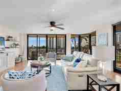 Taken for SEASON 2027 but available May 1 to Dec '26 and April '27 forward. Gulf & Bay Views! Private Beach Access! Step into a realm of sophistication as you enter this spacious three-bedroom corner unit in a great Community with many Amenities. Floor-to-ceiling, wrap-around (hurricane-grade) glass doors showcase sparkling views of the Gulf and mesmerizing sunsets from inside or out on the huge surrounding screened balcony. As you move through the condo, you'll arrive at the den (or second of 3 bedrooms), featuring a picture-perfect view of the Bay outside. What an inspiring space to work, write or do your yoga! Many of you will head for the beach across the street via a private access walkway but others may indulge in the array of resort-style amenities available at your doorstep. Relax at the twinkling Bayside pool, unwind in the Jacuzzi, keep up with your fitness routine in the gym or out at the rooftop tennis & pickleball court. Enjoy neighboring upscale beach dining along esteemed Gulf Shore Drive whether at the Ritz-Carlton, the LaPlaya Hotel, or The Turtle Club. Reserved covered parking space in a Detached garage, many Social activities.