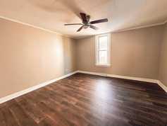 Bright and spacious first-floor apartment in a quiet neighborhood! This home features large windows, a private oversized front porch, a formal dining room with a decorative fireplace, and a generous living area. Enjoy three well-sized bedrooms, an updated kitchen and bath with a walk-in shower, plus a backyard, off-street parking, basement storage, and washer/dryer access. Comfortable living with plenty of space to spread out.