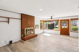 Welcome to 10925 NE Skidmore St, a charming 3-bedroom, 2-bath detached ranch offering a harmonious blend of classic features and modern updates. Step inside to be greeted by the warmth of beautiful hardwood floors, setting the tone for the inviting living room adorned with a wood-burning fireplace and picturesque windows that frame serene views of the expansive yard. An updated kitchen promises culinary delight, while the primary bedroom boasts a walk-in closet for ample storage. The fully finished basement, accessible inside the home or a separate entrance, presents a spacious family room with a second fireplace, a convenient kitchenette, a full bath, and laundry facilities—perfect for additional rental income or extended family living. The property reveals thoughtful updates including newer vinyl windows ensuring efficiency, new roof in 2023, a 96% gas furnace, fresh paint, new flooring, and new gutters. Nature enthusiasts and gardeners will appreciate the large yard