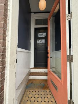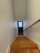 An open light filled one-bedroom apartment in the heart of Hampden. One block south of the Avenue between Elm and Chestnut on Wellington Street. Unlike most Hampden apartments, you have your own front door and interior steps up to the apartment. Hardwood floors in the bedroom and living room. A small dining area off the large kitchen. Kitchen has lots of counter space and ample storage. The kitchen includes a counter-depth refrigerator and European style under counter washer/dryer. Bathroom has a large skylight with borrowed light windows into the living room and glass shower doors. Comes with roller shades on all windows. BGE and water bill paid by the landlord!