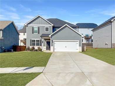 Stunning like-new 4-bedroom, 3-bath home built in 2024, offering modern design and spacious living in a prime Dawsonville location just minutes from GA-400, North Georgia Premium Outlets, dining, and shopping. This beautifully designed open-concept floor plan features luxury LVP flooring throughout the main level and a chef-inspired kitchen with granite countertops, bright white cabinetry, and an oversized island that flows seamlessly into the inviting family room with fireplace-ideal for both everyday living and entertaining. A main-level guest suite with full bath adds flexibility and convenience. Upstairs, the expansive owner's retreat boasts a spa-style bath with soaking tub, separate shower, dual vanities, and a large walk-in closet, complemented by additional bedrooms and a versatile loft space perfect for a media room, office, or play area. Oversized upstairs laundry room with washer and dryer included; refrigerator also included. Enjoy a level, fenced backyard and access to community amenities including a swimming pool. Monthly income of at least 3X rent, credit score of above 640 and background screening required. No prior evictions . PETS considered with restrictions.
