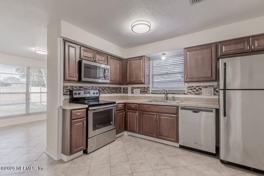 Come and see this cozy brick home in the desirable Springtree Village, loaded with upgrades and move in ready. This well maintained 3 bedroom 2 bathroom is the perfect home in a great neighborhood! Multiple living spaces include a breakfast area, formal dining room, and a spacious living room, perfect for everyday living and entertaining. The kitchen offers ample cabinetry, and all appliances convey. Enjoy a generous yard ideal for family gatherings, cookouts, and perfect for pets! Backyard lanai also offers a comfortable place to relax! Convenient access to the I-295! Numerous extras throughout, this home offers comfort, space, and versatility in a sought-after neighborhood. Dogs under 50lbs OK with owners permission. Washer & Dryer in as-is condition. Fireplace is for decorative purposes only and cannot be used.