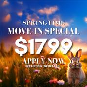Move-In Ready on 04/02/2026! SPRINGTIME MOVE-IN SPECIAL! $1799 MOVE-IN, if moved in on or before 04/09/2026 (latest possible move-in date)! Move-In special includes the refundable security deposit, admin fee and ONE WEEK FREE RENT! Prorated rent is due one week after move-in! 1st full month of rent is due on MAY 1ST! (Animal fees are not included in this move-in special and are due at move-in if applicable)