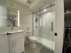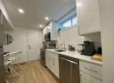 Discover your bright, beautifully appointed 1-bedroom plus large den suite! Fully furnished & fully equipped kitchen. Nice linens, comfy queen size bed. 55 inch TV. Features include quartz countertops, stainless steel appliances, in-suite washer/dryer, central air conditioning, and a stunning bathroom with a large glass shower.
