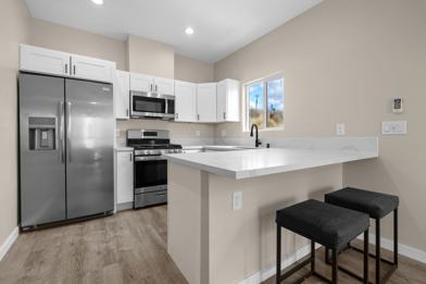 **Partially furnished with a flat screen TV, couch, and barstools!**