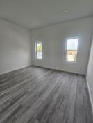 The spacious bedroom offers large windows for natural light, generous wall space, and a clean, minimalist aesthetic ready for your personal touch.