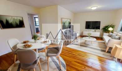 This well-proportioned apartment features a spacious living room with a separate dining alcove perfect for a home office, a large bedroom, and very generous closet space with four closets total.