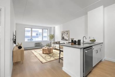 Offers 9-foot ceilings, a sleek granite kitchen with stainless steel appliances, and custom cabinetry. The home is set in a full-service residence with a 24-hour doorman, fitness center, roof deck, and attended garage. Located near multiple subway lines, it s ideal for those seeking modern comfort and unbeatable downtown access. Pets welcome.