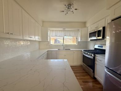 Spacious, bright, and clean second story unit with two large bedrooms and one bath. The open living room and dining area meets the bright, BRAND NEW REMODELED kitchen with all new stainless steel appliances, cabinets, countertops and modern light fixtures. Each bedroom has ample closet space, with wall AC units throughout. You also get one driveway parking space. The building has a shared grass back yard. Great location, close to lots of shops and restaurants in Glendale, Atwater Village, the 2, 5, and 134 freeways. Contact me for a showing! Will consider small pets. Water, trash, and partial gas paid for by owner