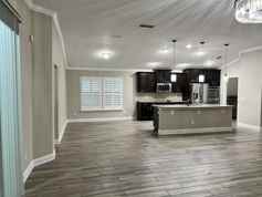 The destin floor plan in Parkside Lakes features stucco & ledgestone front, pendant lights. 3 car garage is heated/cooled with auto screen on larger side. Gourmet kitchen features granite countertops, stainless steel appliances, butlers pantry. Tile flooring thru out. Cooled, screened back porch. Open floorplan with large foyer. Includes all kitchen appliances and washer/dryer.