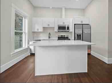 Available Now. Be the first to live in a fully remodeled brand new unit. First floor deleaded 3 bed 2 bath, large spacious unit with high ceilings and large bedrooms spa-inspired bathrooms, luxury chef’s kitchen with brand new appliances, central air and heating hardwood floors.