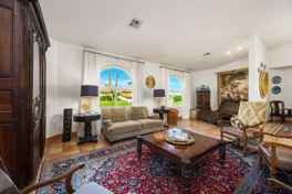 Reserve your 2027 High-End Premium Seasonal Rental in South Palm Desert now. Experience the best of the Coachella Valley in this stunning 3-bedroom, 2.5-bath solar-powered retreat, tucked away on a quiet cul-de-sac just moments from the world-class dining and shopping of El Paseo. Perfectly situated for guests attending the BNP Paribas Tennis Tournament and Stagecoach Music Festival, this home offers luxury, comfort, and effortless entertaining. Spanning 2,534 square feet, the residence features beautifully furnished French Moroccan-inspired living spaces designed for relaxing and gathering. The chef's kitchen is equipped with premium Wolf and Bosch appliances, custom carved cabinetry, generous prep space, a walk-in pantry, and a formal dining area ideal for hosting. Each bedroom is appointed with hotel-quality bedding and custom closet built-ins, while the spa-inspired primary suite boasts a freestanding soaking tub, oversized open shower with dual showerheads, and striking floor-to-ceiling tile. Expansive windows frame breathtaking mountain views and manicured grounds throughout. Step outside to your private backyard oasis, complete with a built-in pool and spa, multiple lounge areas, and automated shades--perfect for unwinding after a day at the tennis courts or dancing under the desert sky. Monthly rent includes weekly pool and gardening service, biweekly housekeeping, a three-car garage with Tesla charger, 64-bottle wine fridge, and a $350 monthly utility credit. Your desert escape awaits. Rental Conditions: 30 day minimal rental duration. *Seasonal (Nov. 15 - April 31) listed for $17,000. *Off-Season (May 1- Nov. 14) listed for $9,250. * Pool & Spa heating available upon request. Small to Medium Dog Permitted upon Specific Approval of Landlord. * $400 move-out clean paid by tenant. * Tenant must complete a rent-spree credit, criminal background screening application