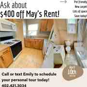 Let's get you prepared. Sign a lease today and move in April! Check out the photos to learn how to save. Call or text number in the photos.