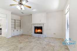 This 3-bedroom, 2-bath home in Diamondhead offers a functional layout with defined living spaces and practical updates throughout. The living room features a brick fireplace with a built-in display shelf. High ceilings and vaulted areas add dimension, and all-tile flooring provides durability and easy maintenance.