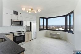 Don't miss this one! Stunning just updated luxury Jr. 2 bedroom luxury home in the heart of the prestigious Prospect Avenue high rise area. Beautiful completely NEW EIK with 12' bay window featuring incredible NYC and sunrise views. Outstanding NEWly renovated bathroom. Redone wood floors. Oversized rooms include 12 X 15 EIK, 17' king size primary bedroom, spacious living/dining room with 12' bay window. Garage parking space included. 24 hour doorman and security. Beautiful pool. Laundry each floor, beautiful exercise gym. Appx 1/2 block to NYC EXPRESS bus; near NYC train, near local buses. Very close to HUMC medical center. Near all shopping, malls and fast and easy car access to NYC and entire NYC metropolitan area.
