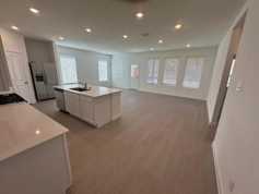 Discover this exceptional 4-bedroom, 2-bath residence, never before lived in, offering a pristine and inviting atmosphere. Nestled in the charming community of Foree Ranch, this home boasts a spacious open floor plan and is situated on a desirable lot adjacent to a tranquil greenbelt, ensuring privacy with no neighbors directly to the right of the property.