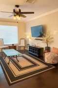 Imagine coming home to this beautifully renovated 2-bedroom, 1-bath home offering comfort, privacy, and effortless city living. Thoughtful upgrades include wood flooring, recessed lighting, crown molding, large windows with abundant natural light, and updated plumbing and electrical. This home is truly move-in ready with all appliances and furnishings included, including a stackable washer and dryer. Enjoy your private deck just off the oversized kitchen with French-style doors for all of your grilling and entertaining needs. There is also a covered front patio where you can relax while watching the sunset with mature trees. The home is gated w/a long private driveway with ample parking. Ideally located just minutes from Downtown Houston, major highways, the Medical Center, The Heights, top universities, the Convention Center, East River Project, and premier dining and entertainment. Perfect for professionals, roomates, or multi-generational living.