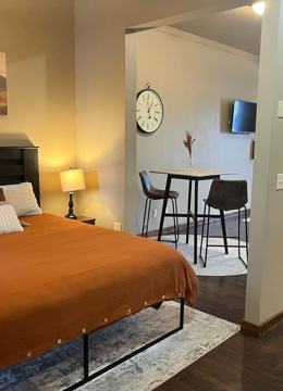 **Charming Fully Furnished Studio for Long-Term Lease****Location:** Prime area with convenient access to local amenities and attractions.**Features:**- **Comfortable Living:** Enjoy radiant floor heating and air conditioning for year-round comfort.- **Fully Equipped Kitchenette:** Comes stocked with essential appliances including: - Stove top - Microwave - Toaster - Blender - Coffee pot- **Laundry Convenience:** In-unit washer and dryer for your convenience.- **Restful Sleep:** Brand new king-size mattress ensures a great night’s rest.**Why You’ll Love It:**This studio unit offers the perfect blend of comfort and functionality, making it ideal for anyone looking to settle in a vibrant location. With its thoughtful amenities and cozy atmosphere, you won’t be disappointed!$1,795/month gets you a fully furnished apartmen. Schedule a showing today! One pet may be ok with a pet deposit.