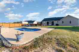 This 3-bedroom, 2-bath split bedroom home features the perfect blend of style, comfort, and easy living--all on a peaceful lot with a fully fenced backyard. The spacious living area flows into a bright kitchen featuring granite countertops, a large island, tile backsplash, and a walk-in pantry. The primary suite feels like a private retreat with its tray ceiling, dual vanity, and walk-in shower. On the opposite side of the home, two additional bedrooms and a full bath provide plenty of space for family or guests. Open the sliding door to a screened-in porch, where you can sip your morning coffee while enjoying the quiet of the fenced yard. Just beyond, follow the path to the in-ground saltwater pool--about 5 feet deep--perfect for relaxing afternoons or summer evenings under the stars. This home combines a peaceful, small-town setting with easy access to Wilson, Zebulon, and Raleigh via nearby highways. With its modern upgrades, open design, and private backyard oasis, this Bailey ranch with an in-ground pool has everything you've been searching for in a rental.