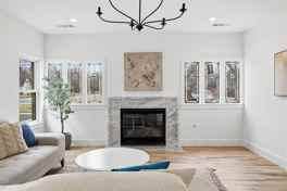 At the heart of the home, the chef’s kitchen is outfitted with professional-grade appliances, soft-close cabinetry, and an oversized island ideal for entertaining. The kitchen flows seamlessly into a grand family room anchored by a stunning statement fireplace, creating the perfect space for everyday living and hosting.