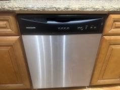 Kitchen features built in stainless steel microwave oven, gas stove, full size refrigerator and dishwasher.