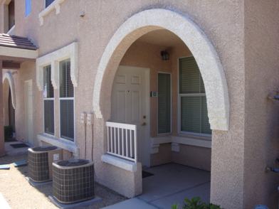 Impressive 1 bedroom condo near shopping and restaurants in beautiful Chateau Nouveau. Attached TWO Car Tandem Garage with opener, entry to interior & finished. Downstairs with open living area. Washer and dryer are included in separate laundry room. Kitchen features granite counter tops and stainless appliances. Large primary suite with walk in closet. Easy access to 215. Gated community. Community pool, spa and clubhouse.