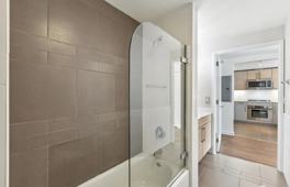 Serene & bright courtyard setting from the balcony. Chic Building - impeccably managed & maintained. This top floor home is well-appointed. Offering - Designer kitchen w Bosch appliances, gas range, Sub-Zero, Studio Becker cabinets, and quartz counter tops. Spacious BA w custom finishes & marble vanity. Custom glass partition and generous closet w custom built-ins complete the open bedroom concept. Refinished walnut HDWD floors. Newly painted throughout. Bosch W/D in unit. 1 car assigned parking. Locked bicycle storage. 24/7 onsite concierge. Amenities include: lobby/lounge, state-of-the-art fitness center + break room, conference room, club lounge, movie theater, and courtyard. Access to a plethora of restaurants and activities, short walk to the waterfront, and South Park. Great commute location with access to Muni, Caltrain, Bay Bridge, and South Bay.