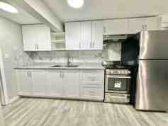 Welcome to this beautifully renovated 1 bedroom, 1 bathroom walk-out lower unit nestled in a quiet residential neighbourhood. Large windows fill the open concept living area with natural light, while the cozy gas fireplace adds warmth and charm. Recently painted and finished with durable laminate flooring throughout, this unit offers a fresh, modern feel. Enjoy the convenience of in-suite stacked laundry at no additional charge, a private entrance, and your own exclusive-use deck. Parking for one vehicle is included, and tenants will appreciate the peaceful surroundings. Applicant must be comfortable with dogs, as three pups share access to the yard