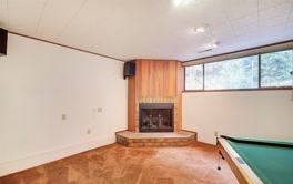 Recreation room with wet bar and fireplace