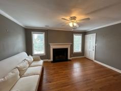 This beautifully updated home features 2 oversized bedrooms and stylish modern paint tones throughout. Enjoy wood flooring with NO carpet, creating a clean and contemporary feel. The open-concept layout offers a spacious flow, complete with ceiling fans and a LARGE living room anchored by a cozy wood-burning fireplace.