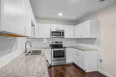 This beautifully updated duplex offers a turnkey property with modern finishes, spacious layouts, and private outdoor living. The unit has been completely renovated from top to bottom, showcasing stylish, low-maintenance laminate flooring throughout. The kitchens feature sleek new cabinets, granite countertops, and stainless steel appliances, perfectly designed for both everyday living and entertaining. Includes a bright, open-concept living and dining area, two-car attached garage, and its own fenced private yard—ideal for pets, families, or creating separate garden or patio spaces. The refreshed bathrooms include updated vanities, fixtures, and lighting for a clean, modern feel. Every detail has been carefully selected for quality and durability, giving both units a cohesive, contemporary look that feels brand new. Situated in a convenient, established neighborhood close to major thoroughfares, shopping, dining, and schools, this duplex combines comfort, style, and practicality. Separate utilities, ample parking, and move-in ready condition