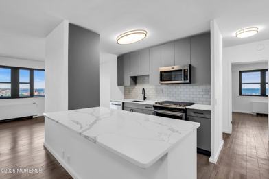 This newly renovated & spacious 2nd floor corner unit has views of the bay and NYC skyline from the balcony and both bedrooms! It's right next to seastreak ferry which makes commuting to the city so easy and living so close to all the shops and restaurants on the famous First Ave in Atlantic Highlands! 10 Ocean has secure entry, a fitness room, outdoor swimming pool, and a live-in super! Free access to tennis and basketball courts! All utilities are included in the rent except electric ($125/month), cable & internet. Cats and dogs are allowed with landlord's approval ($50/mo for cats; $75/mo for dogs) An assigned parking space is $35/month extra. Application fee is $100 per applicant. There is a move-in/out fee of $250. SPECIAL OFFER: ONE MONTH FREE IN THE LEASE!