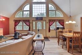 Beautifully designed 4-bedroom, 2-bath chalet is available for rent, it offers the perfect blend of comfort, space, and year-round enjoyment. Step into a stunning living room with soaring cathedral ceilings and a cozy gas fireplace -- the perfect gathering space for relaxing evenings or entertaining guests. The open layout flows effortlessly into a bright four-season room, providing additional living space filled with natural light, ideal for morning coffee, a home office, or a peaceful reading retreat. Located in the highly desirable Arrowhead Lake community, this home sits in the community sewer section for added convenience. Residents enjoy access to an impressive array of amenities including multiple lakes with beaches, swimming pools, fitness center, playgrounds, tennis courts, and year-round recreational activities -- all within a gated community with 24/7 security. Whether you're looking for a full-time residence or a peaceful mountain retreat, this chalet offers comfort, space, and the lifestyle you've been looking for.