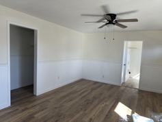 Step inside to an open, light-filled living area featuring fresh paint, ceiling fans, and new hard service flooring that runs throughout the home for a clean, cohesive look. The open space gives the home a comfortable, functional layout that lives larger than its square footage. The kitchen can be highlighted as updated with new white cabinetry, counters, and stainless steel appliances, and there is convenient in home washer/dryer hookups. Both bedrooms are nicely sized with neutral colors and ample wall space to accommodate furniture placement and storage solutions. The bathrooms have been refreshed with a modern vanity, solid-surface countertop, updated fixtures, and new tub/shower. Outside, the home features new siding, fresh exterior paint, new roof and a brand-new front porch and steps that add curb appeal and provide a welcoming entry. The level yard offers room for pets or play and the low-maintenance exterior makes this an easy property to care for. Highlights • Newly renovated 2 bedroom, 2 bath single-family home • Fresh interior paint and new hard surface flooring throughout • Updated ceiling fans and lighting • Bright bathrooms with new tub/shower, modern vanity, and updated fixtures • New exterior siding/trim with attractive board-and-batten look • Brand-new front porch and steps for inviting curb appeal • Efficient floor plan, easy to maintain
