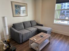 Modern 1 bedroom located in the heart of downtown San Jose, CA. This modern apartment is fully furnished with a fully made queen bed (sheets, blanket, pillows), table, chairs couch, etc. It is turnkey! The apartment is loaded with glassware, dishware, silverware, pots and pans...hand towels, bath towels...all that you need for an easy move in. This apartment building does NOT have parking. Tenants typically purchase parking from private or public PAID vendors all around our building. Laundry is credit card operated on the 3rd floor. Building sits on the corner of San Pedro Square where there are dozens of food options just on our block alone. The train and bus lines are a few blocks away. Too many things to list in this vibrant area.