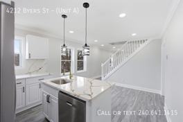 Lovely 4 BR/2 BA Apartment in Capitol Heights! The main living area offers an open layout with durable flooring, recessed lighting, and large windows that bring in natural light. It flows easily from the entryway into the rest of the home, creating a comfortable space for everyday living or entertaining. The kitchen and dining area provide a functional setup with stainless steel appliances, ample cabinetry, generous counter space, and a center island with a built-in sink that offers additional workspace and seating. The dining area sits nearby for easy meals and gatherings.