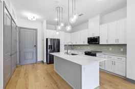 Beautiful modern residence with a bright open-concept layout, wood flooring, and stylish finishes throughout. The sleek kitchen features white cabinetry, generous counter space, and a large island perfect for entertaining. Spacious living area filled with natural light plus a spa-inspired primary bath and ample storage. Enjoy resort-style community amenities including clubhouse lounge, fitness center, and pool. Convenient location near shopping, dining, and major highways—must see!