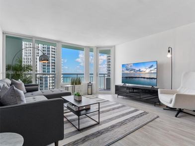 Completely renovated 1-bedroom, 1.5-bath residence just below the penthouse level with sweeping panoramic ocean and city views. One of the few units in the 08 line with an extended private balcony. Agent-friendly listing. Flexible availability. Recent high-end renovation including kitchen with Pannellis Oneskin cabinetry, quartz countertops, Porcelanosa tile and bath fixtures. New motorized solar and blackout shades. Enjoy resort-style amenities including a newly renovated gym, two pools with cabanas and daily towel service, spa, sauna, outdoor BBQ and dining areas, putting green and 24/7 concierge, valet and security. Available furnished or unfurnished. South of Fifth living at its best. Steps from the beach, South Pointe Park, cafes and fine dining. Sorry no pets.